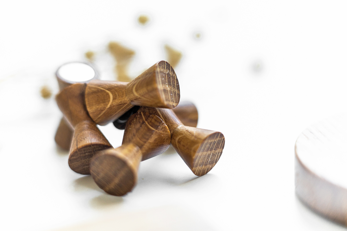 6 Holzpins Doppelkegel